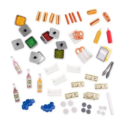 - 60pc Retro Hot Dog Cart playset for 18-inch dolls