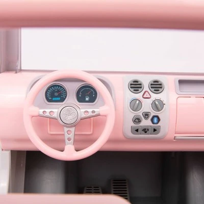Take the sweetest trips with your 18-inch dolls in the Our Generation Off Roader 4×4! This durable and stylish vehicle has a built-in Bluetooth speaker, so your dolls can listen to their favorite tunes during their trips! Turn the steering wheel to activate the signal lights, make the wipers swoosh when it starts to drizzle, and switch on the headlights during nighttime cruising! The included surfboard can be mounted on the roof rack when visiting the beach on sunny days, and the trailer hitch folds down to connect the Our Generation RV Camper or the Mane Attraction Horse Trailer! Fully assembled and ready to play with, this light-gray 4×4 vehicle comfortably fits 2 Our Generation dolls with their loyal pals sitting happily in the back. Beep! Beep! Fun and adventure are just around the corner! (Dolls sold separately)